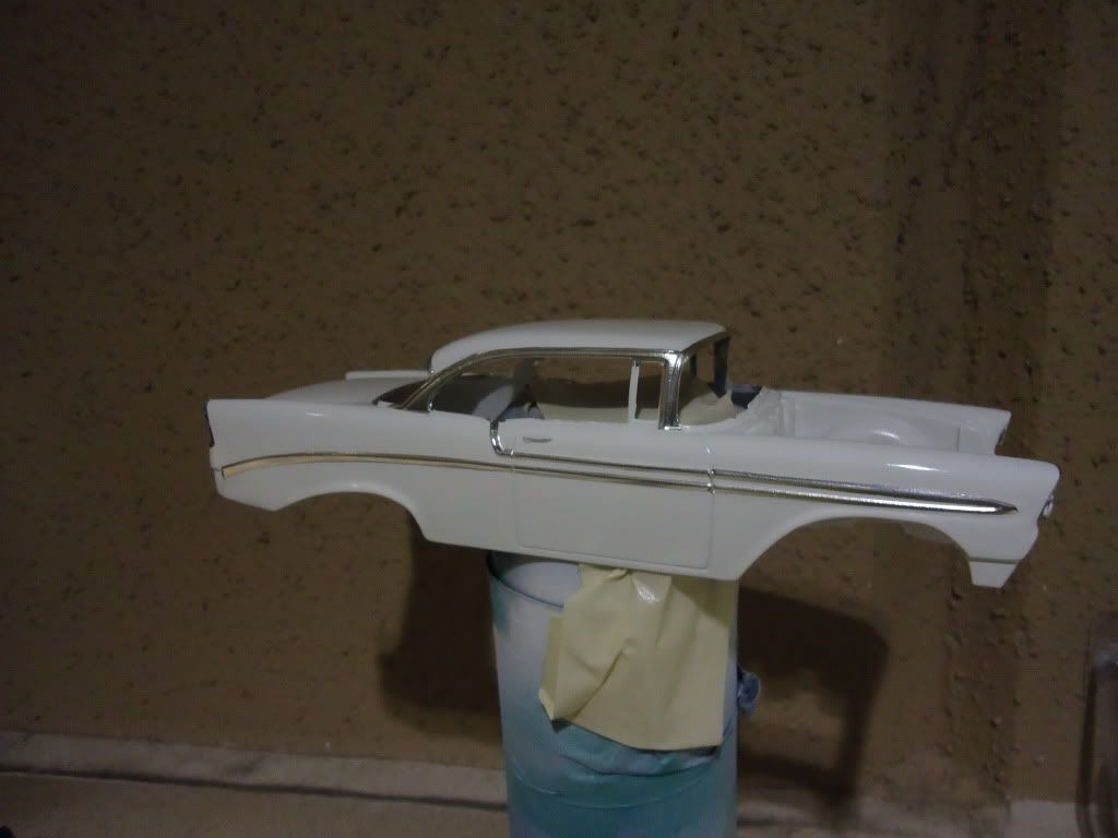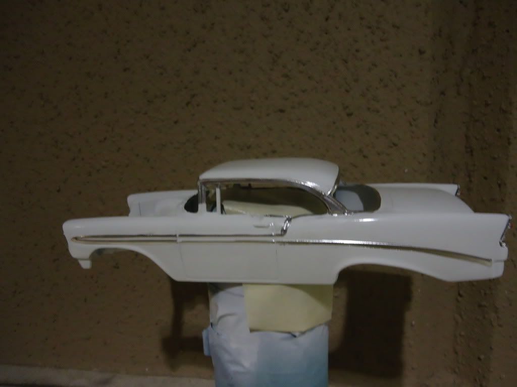 Hey everyone. This is the old tool version of Revell's 56 Bel-Air. The body is painted arctic white with a clear coat on top. Started on the chrome foiil and had to stop and take pictures. These cars have LOTS of chrome lol. Here are the pics of where I am at now. This has been an on going project for about a few months now. Tell me what you guys think.